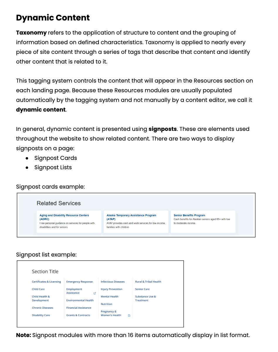 I developed the content model, mapped existing pages to new structures, and created comprehensive authoring guidelines to cover writing standards, template usage, image selection, and CMS instructions.